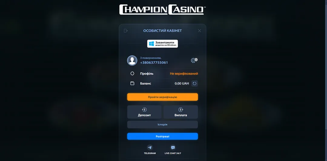 Особистий кабінет Сhampion: повний огляд доступних опцій